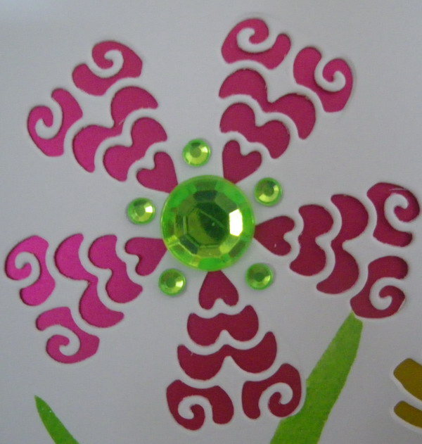 I knew I needed to fill in this spot with something. I didn't want to use ribbon because I have to mail this to New York. I chose these pearls. They are smaller and hopefully will go through without a problem.